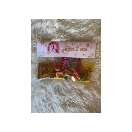 Sachet personnalisé avec 10 sortes de bonbons à l'intérieur